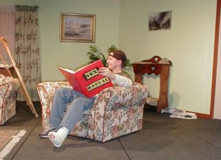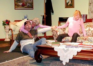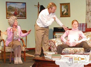 Bernadette Bycroft, who played the "other woman" looked the part and settled into the role after some initial jitters. Christine Otto, who played Alec's ditzy mother, revelled in the part and the audience loved her. Anita Canala, as Alec's wife, looked suitably down-trodden but played the part with warmth and sincerity. Anthony Clapp as Alec's injured son, played his part convincingly, taking some pretty athletic falls. Catharine Johnson, a first-timer on stage, played the part of Alec's very pregnant daughter. After some initial jitters she settled into the role and was convincingly "pregnant".